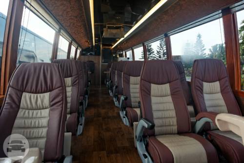 CAPACITY: 24 Persons MODEL: 2014 COLOR: BROWN The Luxury Bus is a premium mode of transportation for people traveling together! Wherever you may wish to go with family and friends, you can expect to get there seated in the lap of luxury, and surrounded by the finest things you can have while in transit! Pamper yourself with the Indulgencia, our luxury coach that can accommodate 24 guests in its plush cabin. The Luxury Bus fleet is also equipped for your ultimate safety. It is fitted with a speed limiter, an anti-lock braking system (ABS) and a GPS tracking device. SPECIAL FEATURES: - Coffee machine and chiller -Surf the net, watch movies, play games and listen to music with our 10” high definition -Funtoro touch-screen tablet monitors -Each guest is provided with a top-quality headset for a truly unique listening experience -Seats boast of a wide backrest for maximum travel comfort