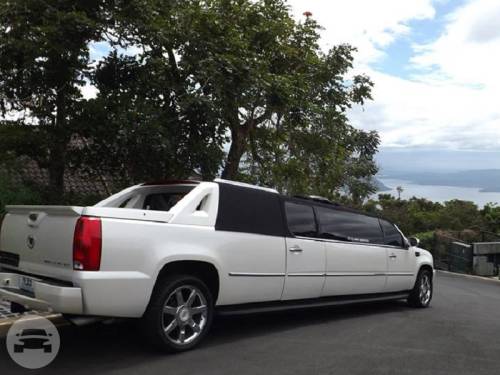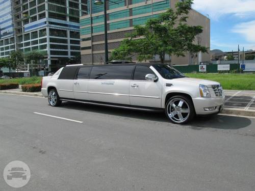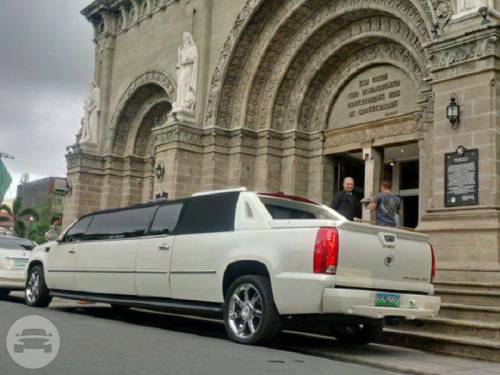 Capacity: 8 Persons MODEL: CADILLAC ESCALADE STRETCHED LIMO COLOR: WHITE Turn heads as you drive towards your destination with the Cadillac Escalade, a first class limo that can accommodate up to 8 persons on board. Its state-of-the-art interior guarantees style and comfort, a perfect ride for your wedding, debut or night on the town. It is equipped with a complete sound system for your entertainment.